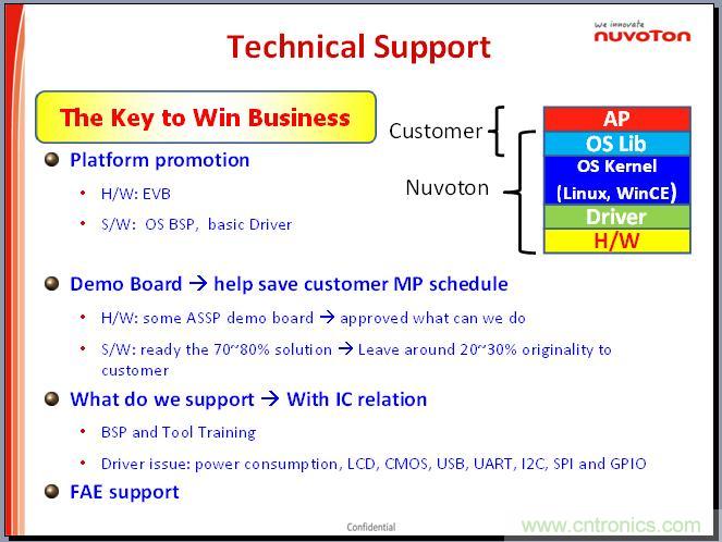 這個是我們目前的所謂的開發的門檻,其實以新唐的MCP來講,我們做的比較簡單,我們的整個系列都有提供,新唐側重于在驅動方面。另外我們公司在深圳科技園也有定期的培訓課程。在深圳的本地,我們也有技術支持。