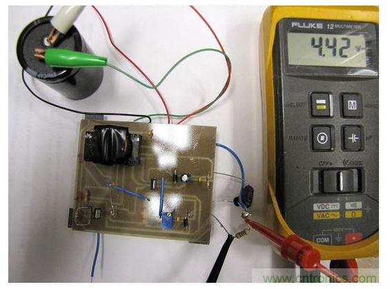 Q2(IRLU3103)是用于調節的另外一個MOSFET。Q2的閾值電壓用于調節輸出電壓。當輸出達到5V時,由R1和R2組成的分壓電路使得Q2導通,振蕩停止,進而導致輸出電壓下降。由于這個閾值電壓的變化不是很急劇,調節效果通常不是很好。