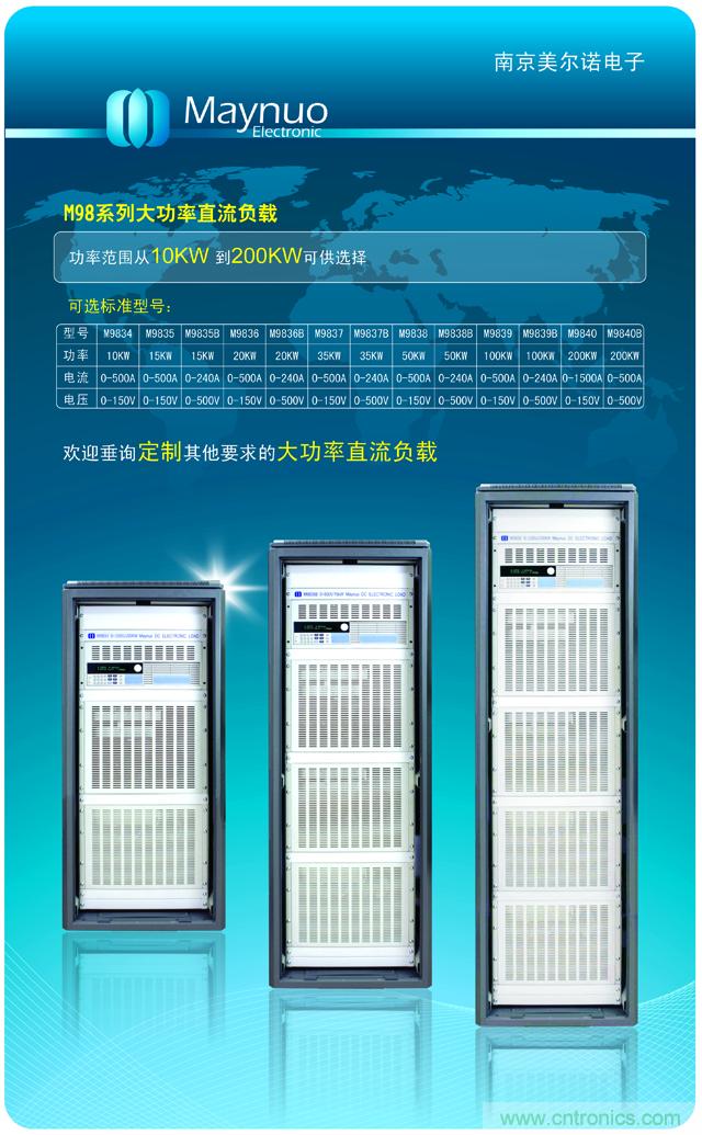 【導讀】近日,南京美爾諾推出多種型號的M98系列大功率直流負載,可提供選擇的功率范圍是10KW到200KW。如有其他要求,歡迎垂詢??靵砜纯窗?。