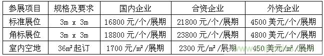 ②標準展臺:中英文楣板、9㎡地毯、方桌1張、折椅2把、射燈2只、220V電源插座1支、紙簍