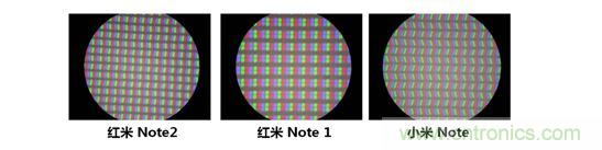 我們再來看一下顯示屏的像素結構,從像素的排列來看,這個屏幕確實是IPS技術的,像素比紅米Note1有了大大的提升。