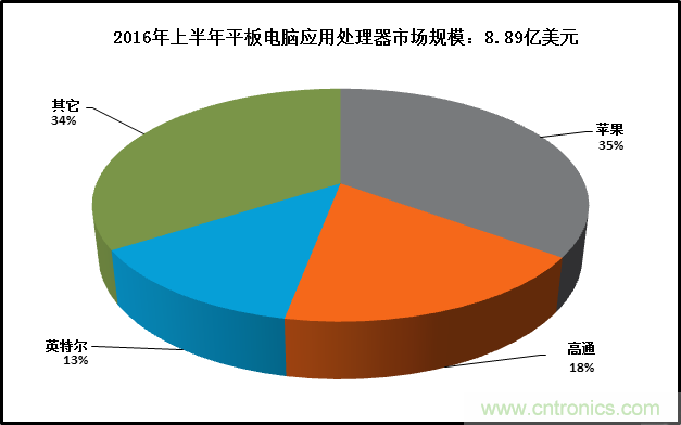 【導讀】Strategy Analytics手機元器件研究服務發布的最新報告顯示,2016年上半年全球平板電腦應用處理器市場規模比去年同期下降34%至8.89億美元。