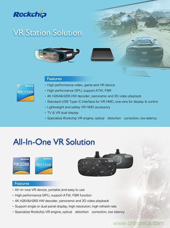 作為中國(guó)VR解決方案布局最早的芯片商,CES2017瑞芯微展示了成熟可產(chǎn)量的VR終端設(shè)備,包括可支持語音識(shí)別的VR一體機(jī)及VR分體機(jī),并且可支持VR攝錄機(jī)的SD卡直接播放功能。