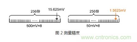 一般數(shù)字示波器采用的都是8位ADC,對任何一個波形值都是用256個0和1來重組。假設(shè)示波器垂直方向滿量程為8格,對應(yīng)量化級數(shù)256。在垂直檔位為500mV/div的情況下,垂直精度為(500mV*8)/256=15.625 mV。測量同一個信號,在垂直檔位為50mV/div的情況下,即(50mV*8)/256=1.5625 mV,垂直精度就達到了1.5625 mV。