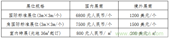 注:A、標(biāo)準(zhǔn)展位提供:三面圍板、楣板制作、洽談桌一張、折椅兩把、射燈兩只、10A/220V插座一個(gè)。B、室內(nèi)特裝展區(qū)只提供光地,不提供任何配置,展商自行負(fù)責(zé)展位搭建布置的各種費(fèi)用。