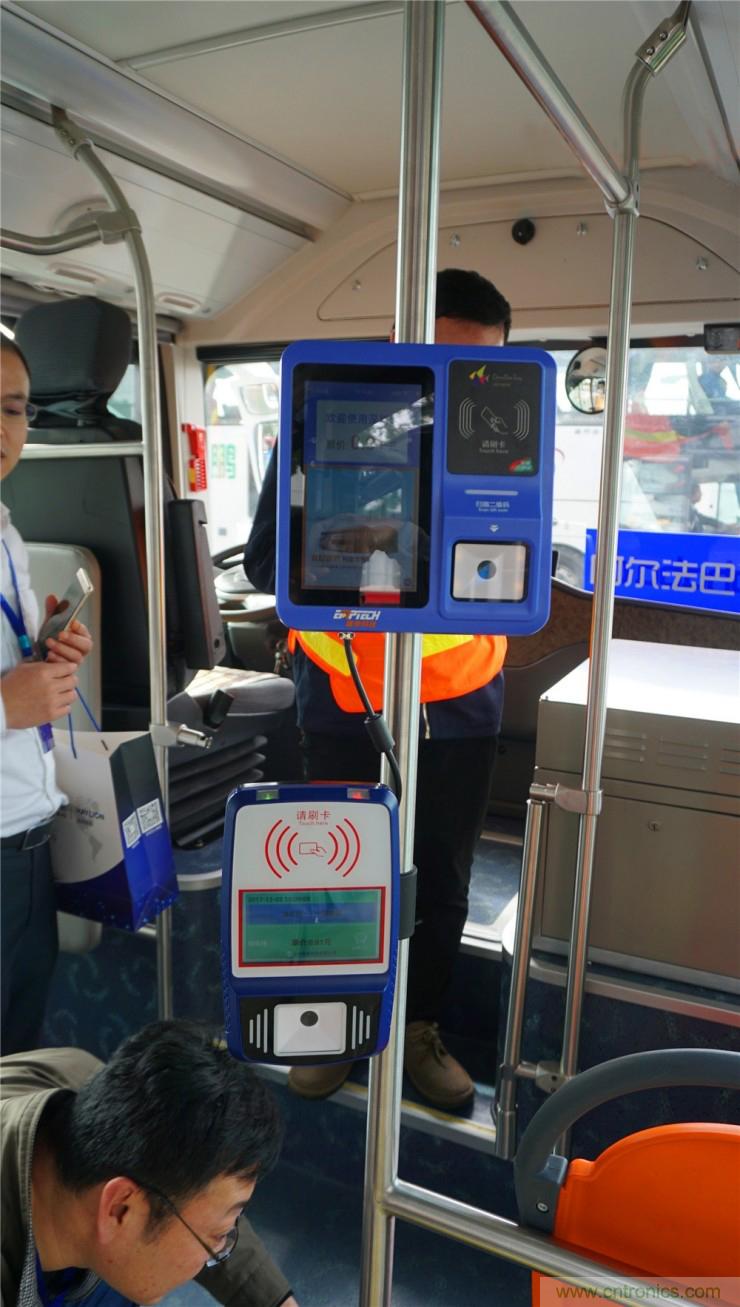 巴士上也安裝了相應的付費刷卡機以及線路進度顯示圖