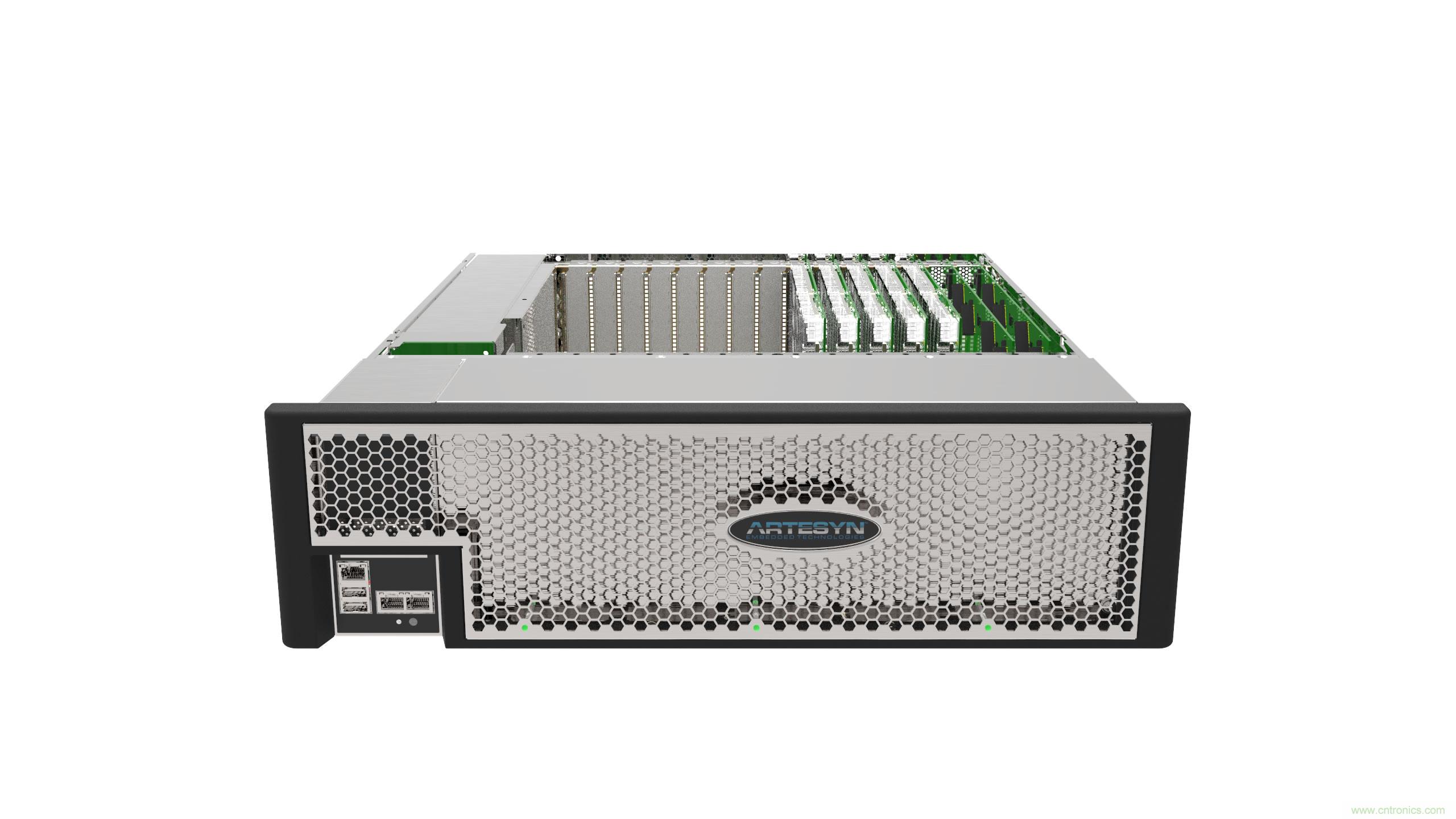 這款3U(5.25 英寸,133.4mm)MaxCore IPC 平臺只有508mm深,因此可安裝在19英寸的標(biāo)準(zhǔn)規(guī)格服務(wù)器機(jī)架之內(nèi)。這個系統(tǒng)可采用多達(dá)兩個內(nèi)置式1,100W(交流)電源,為每一PCIe插槽可提供高達(dá)150W的功率輸出。這個計算服務(wù)器平臺最多可裝設(shè)31,100W的電源,讓系統(tǒng)有足夠的冗余供電。此外,這個平臺即使在40攝氏度的溫度環(huán)境下以高達(dá)1,800W的輸出功率操作,其散熱系統(tǒng)也能耗散所產(chǎn)生的全部熱能。