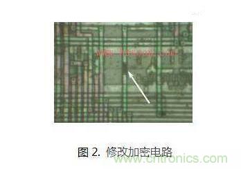對不同芯片,提供對應的圖紙,讓廠家做電路修改,目的是讓MCU的存儲區變得可讀。有些MCU默認不允許讀出Flash或者E2PROM中的數據,因為有硬件電路做保護,而一旦切斷加密連線,程序就暴露可讀了。如圖2所示