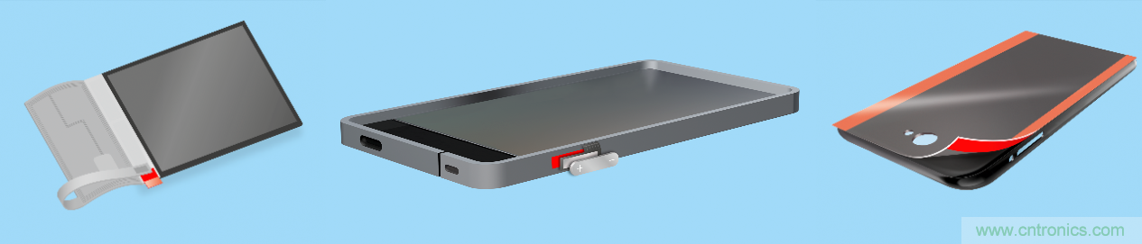 裝配過程中FPC的臨時應用:包括彎折FPC運輸過程中的臨時固定、側鍵固定、機殼的臨時保護。