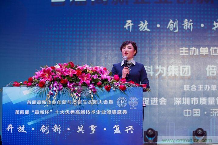 1月8日下午6:30開始的頒獎慶典分別由深圳市質(zhì)量管理與檢測促進(jìn)會執(zhí)行會長、深圳市電子商會副會長、深圳市半導(dǎo)體與照明協(xié)會副會長、湖南工業(yè)大學(xué)工商管理碩士研究生導(dǎo)師、倍通檢測集團(tuán)創(chuàng)始人總裁鄧華麗女士、深圳市南山區(qū)科技創(chuàng)新局劉石明局長、深圳市電子商會創(chuàng)會會長王殿甫會長、中科為集團(tuán)董事長諸華軍先生致開場辭。