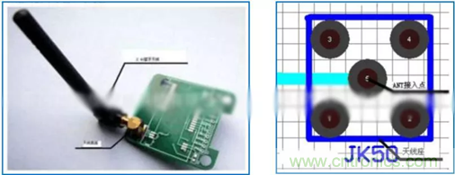 陶瓷天線是另外一種適合于藍牙裝置使用的小型化天線。陶瓷天線的種類分為塊狀陶瓷天線和多層陶瓷天線。由于陶瓷本身介電常數較PCB電路板高,所以使用陶瓷天線能有效縮小天線尺寸,在介電損耗方面,陶瓷介質也比PCB電路板的介電損失小,所以非常適合低耗電率的的藍牙模塊中使用。在 PCB設計時,天線周圍要凈空就可以了,特別注意不能敷銅。如下圖: