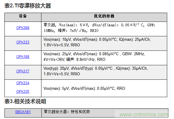 下面的表2重點介紹了TI的一些零漂移放大器。有關完整列表,請點擊查看德州儀器的參數搜索工具結果。