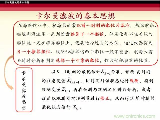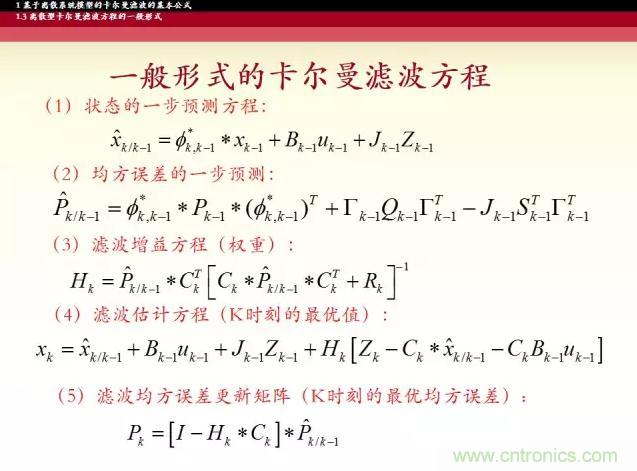 【導(dǎo)讀】卡爾曼濾波器是一種由卡爾曼(Kalman)提出的用于時變線性系統(tǒng)的遞歸濾波器。這個系統(tǒng)可用包含正交狀態(tài)變量的微分方程模型來描述,這種濾波器是將過去的測量估計誤差合并到新的測量誤差中來估計將來的誤差。接下來的五張圖帶你了解卡爾曼濾波器的基本思路和公式。