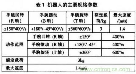 確定了空間結構和手腕結構后,可確定手腕回轉、手腕擺動及手腕旋轉三個姿態的自由度。其參數見表l (參數來于SSA2000工業機器人)。