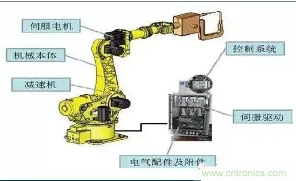 【導讀】工業(yè)機器人廣泛使用在產業(yè)制造上,汽車制造、電器、食品等,能替代反復機器式操縱工作,是靠本身動力和控制才能來實現(xiàn)種種功用的一種機器。它能夠承受人類指揮,也能夠按照事先編排的程序運轉。如今我們講講工業(yè)機器人基本主要構成部分。