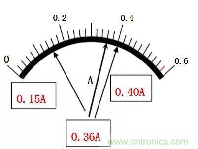 1、若是0~0.6A檔,最小分度值為0.02A,半格為0.01A,圖中讀數(shù)應為 0.35A。