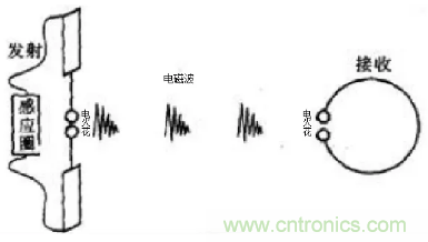 依照麥克斯韋理論,變化的電流能輻射電磁波。于是赫茲根據電容器經由電火花會產生電流振蕩的原理,設計了一套電磁波發生器。