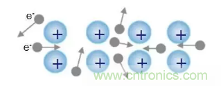 如果給金屬線的一段端的加上一個強大的帶正電的物體,這些帶負電的自由電子就會因為被正電吸引,齊刷刷地奔向正電物體,像搶女朋友一樣爭先恐后地樣向運動,于是這些流動的電子就形成了電流。
