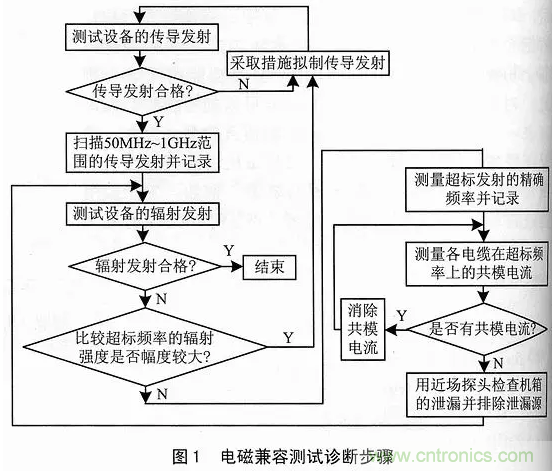 圖1給出了一個設備或系統的電磁干擾發射與故障分析步驟。按照這個步驟進行,可以提高測試診斷的效率。