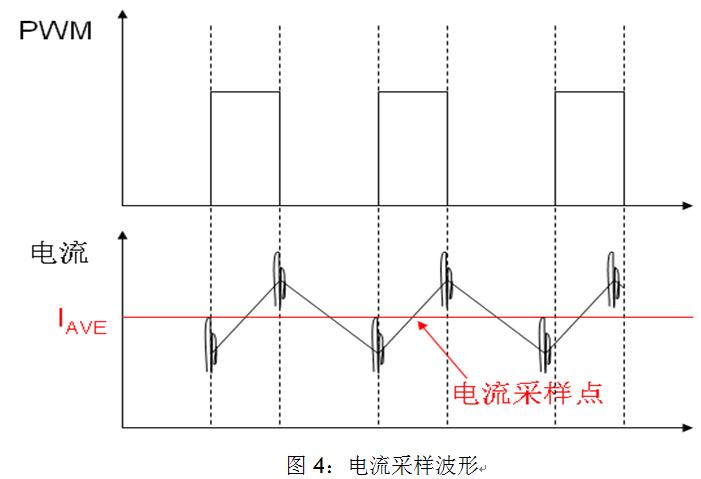 2) 能夠在PWM的開通期間特定時刻觸發A/D采樣;因為在PWM逆變器帶感性負載的控制系統中,由于系統的一些寄生參數導致PWM在開通和關斷期間電機的相線上出現振鈴(如圖4所示),這些振鈴會耦合到A/D采樣的回路中,因此我們應避開在PWM開關過程中進行A/D采樣。如果我們在PWM開通期間的中點觸發電流采樣,我們將會得到電流的平均值,這將有利于我們對電流補償的控制。