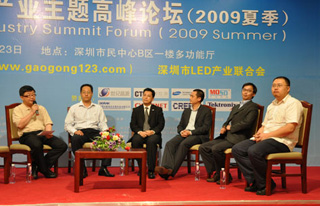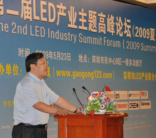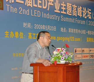 2009年5月23日,由高工在線和深圳市LED產業聯合會共同主辦的第二屆LED產業主題高峰論壇(2009夏季)在深圳市民中心B區一樓多功能廳隆重舉辦。來自香港應用科技研究院的蔡振榮博士、清華大學深圳研究生院副研究員、半導體照明實驗室副主任錢可元教授、康佳光電研究所副所長馬志凌博士、CREE 中國區總經理唐國慶、世紀晶源研發中心主任鐘群博士、深圳雷曼光電科技限公司總經理李漫鐵、德士達光電照明科技(深圳)有限公司的總經理熊映翔、深圳市華測檢測技術股份有限公司(CTI華測檢測機構)副總裁/廣州市華德檢測技術開發有限公司(DEKRA-CTI華德)總經理聶鵬翔、深圳茂碩電源科技股份有限公司的技術總監蘇周等嘉賓就LED芯片、核心器件、顯示、道路照明、路燈標準與關鍵技術、LED驅動電源、LED產品檢測、認證和標準化等方面發表了主題演講。