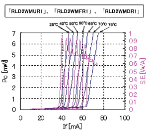 此次開發(fā)的「RLD2WMUR1」、「RLD2WMFR1」、「RLD2WMDR1」,改良了激光發(fā)振時必要的發(fā)光部分的光和電流的關(guān)閉式結(jié)構(gòu)。在脈沖振蕩(pulsation)發(fā)光時,溫度特性或?qū)ぷ麟娏鲿绊戨娏鞯年P(guān)閉式結(jié)構(gòu),一般都是同時控制的,此次ROHM采用獨創(chuàng)的獨立式控制結(jié)構(gòu)。這種自動脈沖式振蕩(pulsation)的特長是成功提高了溫度特性,在高溫環(huán)境下激光振蕩不僅能夠進行單一模式化,沒有散熱措施也能以低噪音穩(wěn)定地讀取光盤。同時,也提高了工作電流的電流密度,與其他公司相比-10mA的70mA (DVD方面,機箱溫度70ºC在情況下)實現(xiàn)了低工作電流。