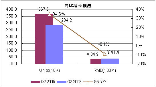 2009年第二季度,由于市場(chǎng)淡季來(lái)臨,需求動(dòng)力不足。賽迪顧問(wèn)預(yù)測(cè),第二季度市場(chǎng)銷(xiāo)量為367.5萬(wàn)臺(tái)。