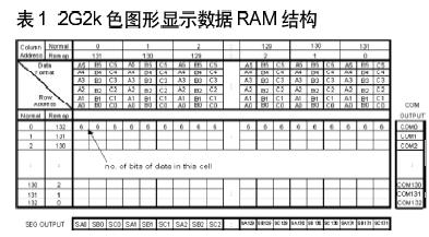 每個象素對應18-bit的數據,其中每個三色子象素為6-bit。GDDRAM對圖形顯示的象素數據具體對應安排見表1。