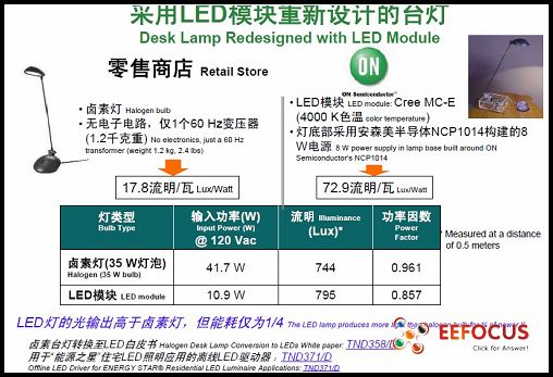 采用LED模塊重新設計的臺燈參數對比
