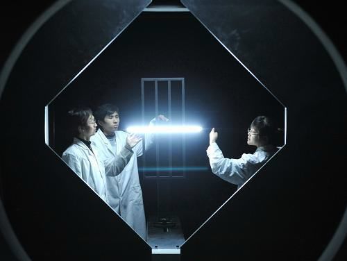 圖:科技人員在測試LED燈電源效率