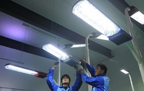 圖:技術人員在檢測LED公路照明燈
