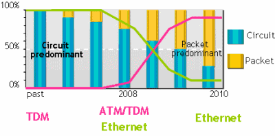 圖2城域網主導業務類型由TDM向Packet的轉換