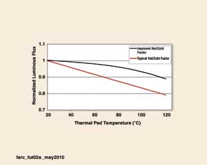 熱/冷因數(shù)的改善增加了LED的工作溫度范圍,讓照明設(shè)計(jì)師有機(jī)會在LED極限內(nèi)的任何結(jié)溫下工作。
