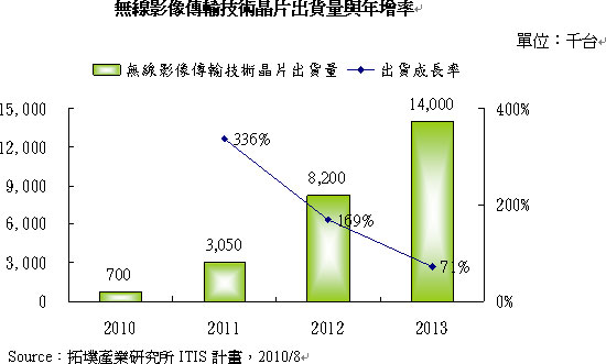 • 2010年無線影像傳輸技術(shù)晶片出貨量為70萬組