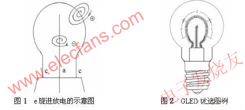 GLED的e旋進放電激發的渾然一體的弧光放電球的外形與傳統的白熾燈泡殼匹配,這是顯而易見的。