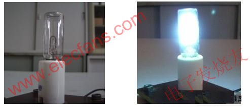 在高頻下點節能燈,燈的光效比50(60)Hz時明顯提高。這是由于電極在作為陽極的半周內振蕩的消失,減少了電極位降損耗,而不是由于正柱區效率的提高。對一些熒光燈的研究發現,熒光燈交流供電頻率從50Hz增加到20kHz以上時,燈光效一般可提高10%。