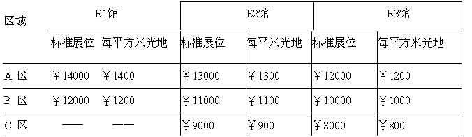 (A) 標準展位(每個標準展位為3米×3米=9平方米) 標準展位設(shè)施配備為:三面鋁合金圍板、滿鋪地毯、兩只射燈、兩把折椅,一張問詢桌和一個220V/500W的電源插座,楣板上書中英文公司名稱。單個拐角位置展位費增加10%