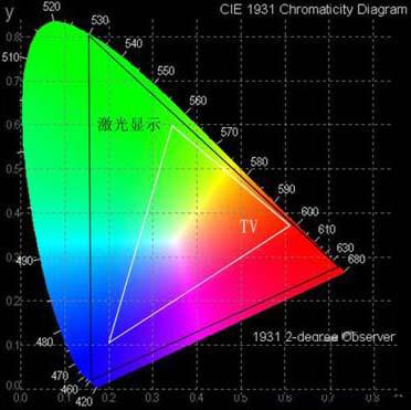 紅、綠、藍(lán)激光在人眼可見光譜國際標(biāo)準(zhǔn)色域圖中色域覆蓋率
