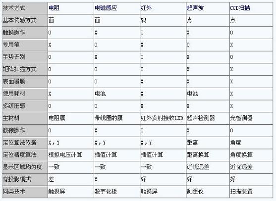 綜上所述,交互式電子白板采用不同的定位方式,則會有不同的特點和性能。下表將上面的文字內容進行總結和對比,相信讀者能分清各種技術的差異,選擇適合自己的一款產品。