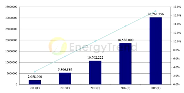 • 預估微型逆變器的滲透率在2011年可提升至3%,在2015年可達15%~20%