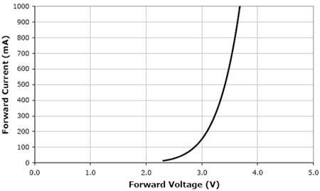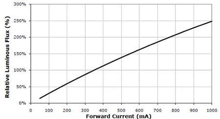 圖1. XLampXP-G的輸出相對光強和正向電流的關(guān)系