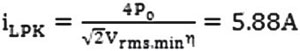 選擇電感L=220H, 選取PQ3230為磁芯,各項參數查表知道,磁芯有效面積Ae=161mm2,AL=5140nH/N2,Le=7.46cm,磁芯的最高工作磁密Bs=0.32T,電感的峰值感應電流: