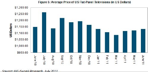 據(jù)IHS iSuppli公司的報告:“Price Gap CONTInues between Active vs. Passive 3-D LCD TVs”,由于價格較高的主動3D液晶電視供應(yīng)增加,美國平板電視價格6月份連續(xù)第三個月上漲。
