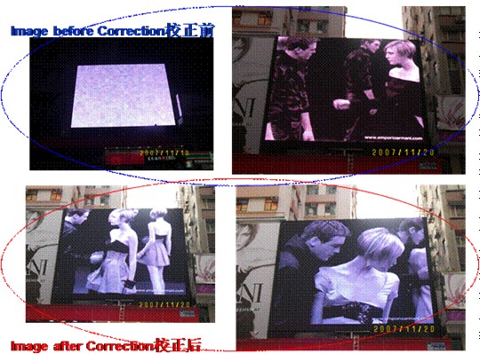 圖3  戶外顯示屏現場校正前后比較