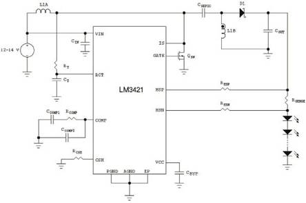圖6 SEPIC配置中的LM3421