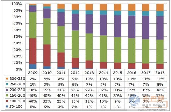 此外,由于智慧型手機(jī)的興起,手機(jī)將會(huì)是像素密度成長(zhǎng)最明顯的應(yīng)用產(chǎn)品。在2012年,22%的手機(jī)面板(包含液晶面板和AMOLED主動(dòng)矩陣有機(jī)發(fā)光二極體面板)將超過200PPI;估計(jì)2015年將達(dá)到50%市占率,2018年將超過55%市占率。