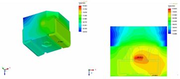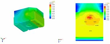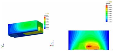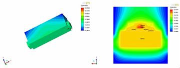 圖6.水平散熱結(jié)構(gòu)LED熱模擬溫度分布圖