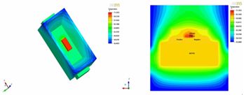 圖8.垂直散熱結(jié)構(gòu)LED熱模擬溫度分布圖