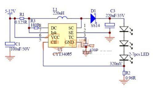 CYT34065是在CYT34063基礎上,改進設計而派生的LED驅動器。CYT34065繼續保留CYT34063優秀的特點外,并且還能高效率的驅動LED。CYT34065是專門為LED大功率而設計的一款直流驅動器,可選擇升壓、或降壓應用,最大輸出典型值1A,效率高達85%以上。 蓄電池直流應用設計場所中CYT34065有著較高的性價比,高可靠性、穩定性高,恒流效果極佳。