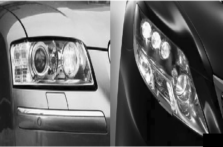 圖1 Audi A8 日間行車燈( 左) 及豐田全白光Nichia LED 前照燈( 右)